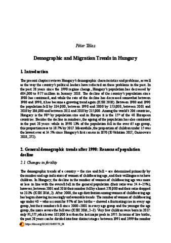 Tálas, Péter Henrik (2020) Demographic and Migration Trends in Hungary. In: Demography and Migration in Central and Eastern Europe. Ludovika Egyetemi Kiadó, Budapest, pp. 65-78. ISBN 9789635311675; 9789635311682; 9789635311699