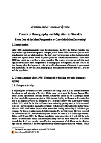Bleha, Branislav and Šprocha, Branislav (2020) Trends in Demography and Migration in Slovakia : From One of the Most Progressive to One of the Most Decreasing. In: Demography and Migration in Central and Eastern Europe. Ludovika Egyetemi Kiadó, Budapest, pp. 143-155. ISBN 9789635311675; 9789635311682; 9789635311699