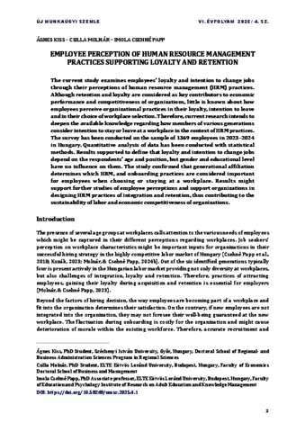 Kiss, Ágnes and Molnár, Csilla and Csehné Papp, Imola (2025) Employee Perception of Human Resource Management Practices Supporting Loyalty and Retention. ÚJ MUNKAÜGYI SZEMLE, 6 (4). pp. 2-23. ISSN 2677-1306
