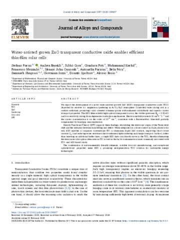 Pasini, Stefano and Baraldi, Andrea and Cora, Ildikó and Foti, Gianluca and Kashif, Muhammad and Mezzadri, Francesco and Onuorah, Ifeanyi John and Parisini, Antonella and Pécz, Béla and Shapouri, Samaneh and Sozzi, Giovanna and Spoltore, Donato and Bosio, Alessio (2026) Water-assisted grown ZnO transparent conductive oxide enables efficient thin-film solar cells. JOURNAL OF ALLOYS AND COMPOUNDS, 1057. No. 186907. ISSN 0925-8388