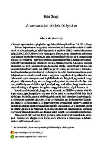 Háló, Gergő (2023) A nemzetközi cikkek felépítése. In: Tudománystratégia. Ludovika Egyetemi Kiadó, Budapest, pp. 71-81. ISBN 9786156598639; 9789636530037; 9786156598646
