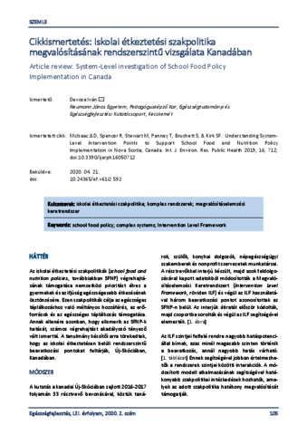 Devosa, Iván (2020) Cikkismertetés: Iskolai étkeztetési szakpolitika megvalósításának rendszerszintű vizsgálata Kanadában. EGÉSZSÉGFEJLESZTÉS, 61 (2). pp. 105-107. ISSN 1786-2434 (nyomtatott); 2498-6666 (elektronikus)