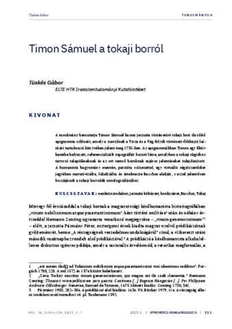 Tüskés, Gábor (2025) Timon Sámuel a tokaji borról = Sámuel Timon on Tokaj Wine. EPHEMERIS HUNGAROLOGICA, 5 (1). pp. 113-137. ISSN 2786-3522