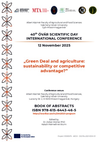 Lemmer, Balázs and Sánta, Zsófia Gréta and Jákói, Zoltán Péter and Beszédes, Sándor (2025) Improving biogas yield from meat processing wastewater via magnetite nanoparticles and microwave treatment. In: 40th ÓVÁR SCIENTIFIC DAY INTERNATIONAL CONFERENCE, 2025.11.12, Mosonmagyaróvár.
