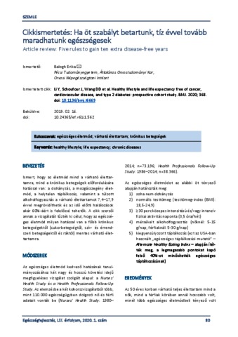 Cikkismertetés: Ha öt szabályt betartunk, tíz évvel tovább maradhatunk egészségesek = Article review: Five rules to gain tenextra disease-free years