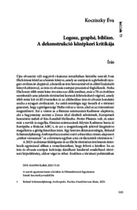 Kocziszky, Éva (2025) Logosz, graphé, biblion : A dekonstrukció középkori kritikája. KELLÉK : FILOZÓFIAI FOLYÓIRAT (73). pp. 145-159. ISSN 1453-7400