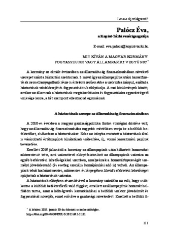 Palócz, Éva (2025) Mit kíván a magyar kormány: fogyasszunk vagy állampapírt vegyünk? KÜLGAZDASÁG, 69 (1-2). pp. 111-115. ISSN 0324-4202