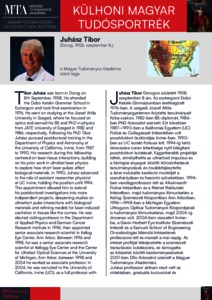 UNSPECIFIED (2026) Külhoni magyar tudósportrék. Juhász Tibor (Dorog, 1958. szeptember 8.). HÍRLEVÉL. MAGYAR TUDOMÁNYOS AKADÉMIA MAGYAR TUDOMÁNYOSSÁG KÜLFÖLDÖN ELNÖKI BIZOTTSÁG, 16 (2). pp. 10-13.