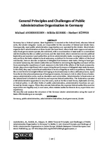Anderheiden, Michael and Szirbik, Miklós and Küpper, Herbert (2024) General Principles and Challenges of Public Administration and Organization in Germany. In: General Principles and Challenges of Public Administration Organization in Central Europe. Legal Studies on Central Europe . Central European Academic Publishing, Miskolc, Budapest, pp. 137-164. ISBN 9786156474780; 9786156474797; 9786156474803