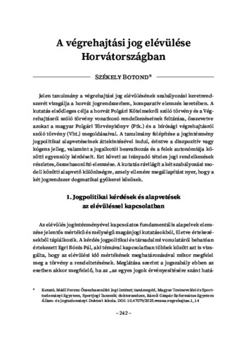 Székely, Botond (2025) A végrehajtási jog elévülése Horvátországban. In: A végrehajtási jog aktuális kérdései. Modern Összehasonlító Jogi Trendek . Mádl Ferenc Összehasonlító Jogi Intézet, Budapest, pp. 242-252. ISBN 9786156356604; 9786156356611; 9786156356628