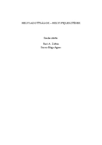 Biró, A. Zoltán and Sárosi-Blága, Ágnes, eds. (2025) Helyi adottságok – helyi fejlesztések. Átmenetek . Státus Kiadó, Csíkszereda. ISBN 978-606-661-010-0