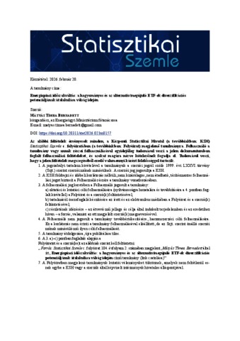 Mátyás, Tímea Bernadett (2026) Energiapiaci időszakváltás: a hagyományos és az alternatív/megújuló ETF-ek diverzifikációs potenciáljának átalakulása válság idején = Energy market regime change: the transformation of diversification potential in traditional and alternative/renewable ETFs during a crisis. STATISZTIKAI SZEMLE, 104 (2). pp. 157-184. ISSN 0039-0690