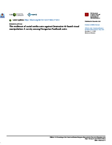 Bányász, Péter and Gulyas, Laszlo and Szádeczky, Tamás and Bányász-Váczi, Kincső Boróka (2025) The resilience of social media users against Generative AI-based visual manipulation: A survey among Hungarian Facebook users. In: Proceedings of the Central and Eastern European eDem and eGov Days 2025 (CEEeGov 2025). ACM Press, New York, pp. 181-188. ISBN 9798400721977