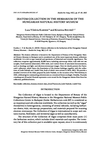 Kardos, Luca Viktória and Buczkó, Krisztina (2025) Diatom collection in the herbarium of the Hungarian Natural History Museum. STUDIA BOTANICA HUNGARICA, 56 (1). pp. 47-56. ISSN 0301-7001