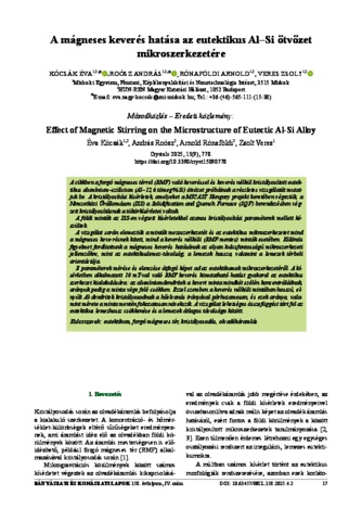 Kócsák, Éva and Roósz, András and Rónaföldi, Arnold and Veres, Zsolt (2025) A mágneses keverés hatása az eutektikus Al–Si ötvözet mikroszerkezetére. BÁNYÁSZATI ÉS KOHÁSZATI LAPOK (2023-), 158 (4). pp. 17-25. ISSN 3057-9899
