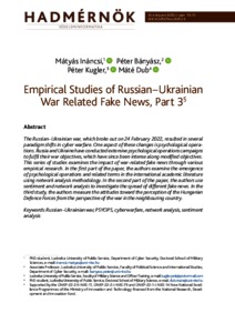 The Russian–Ukrainian war, which broke out on 24 February 2022, resulted in several paradigm shifts in cyber warfare. One aspect of these changes is psychological operations. Russia and Ukraine have conducted extensive psychological operations campaigns to fulfil their war objectives, which have since been intense along modified objectives. This series of studies examines the impact of war-related fake news through various empirical research. In the first part of the paper, the authors examine the emergence of psychological operations and related terms in the international academic literature using network analysis methodology. In the second part of the paper, the authors use sentiment and network analysis to investigate the spread of different fake news. In the third study, the authors measure the attitudes toward the perception of the Hungarian Defence Forces from the perspective of the war in the neighbouring country.