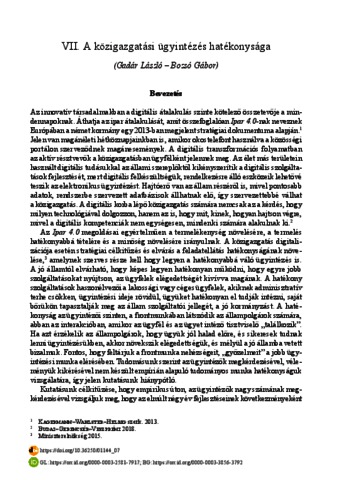 Gadár, László and Bozsó, Gábor (2023) A közigazgatási ügyintézés hatékonysága. In: Digitális forradalom a magyar közszolgálatban. Ludovika Egyetemi Kiadó, Budapest, pp. 141-162. ISBN 978-963-531-970-1