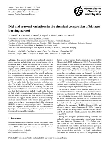Hoffer, András and Gelencsér, András and Blazsó, Marianne and Guyon, P and Artaxo, P and Andreae, MO (2006) Diel and seasonal variations in the chemical composition of biomass burning aerosol. ATMOSPHERIC CHEMISTRY AND PHYSICS, 6 (11). pp. 3505-3515. ISSN 1680-7316