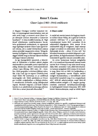 Reisz, T. Csaba (2019) Glaser Lajos (1903–1944) emlékezete. CATASTRUM: ÉVNEGYEDES KATASZTERTÖRTÉNETI FOLYÓIRAT, 6 (3). pp. 27-50. ISSN 2064-5805