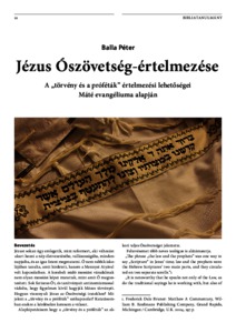 Balla, Péter (2017) Jézus Ószövetség-értelmezése : A „törvény és a próféták” értelmezési lehetőségei Máté evangéliuma alapján. SZOLGATÁRS: BAPTISTA FOLYÓIRAT, 27 (3-4). 22-33.. ISSN 1218-425X