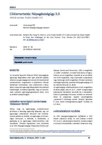 Cikkismertetés: Népegészségügy 3.0 = Article review: Public Health 3.0