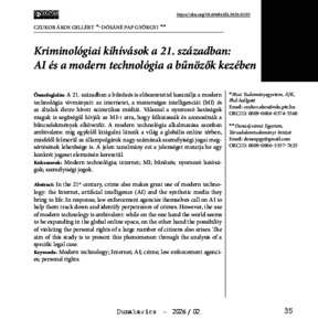 Czukor, Ákos Gellért and Dósáné, Pap Györgyi (2026) Kriminológiai kihívások a 21. században: AI és modern technológia a bűnözők kezében. DUNAKAVICS, 14 (2). pp. 35-41. ISSN 2064-5007
