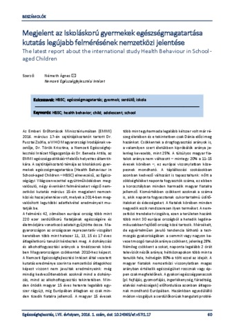 Németh, Ágnes (2016) Megjelent az Iskoláskorú gyermekek egészségmagatartása kutatás legújabb felmérésének nemzetközi jelentése = The latest report about the international study Health Behaviour in School-aged Children. EGÉSZSÉGFEJLESZTÉS, 57 (1). pp. 60-61. ISSN 1786-2434 (nyomtatott); 2498-6666 (elektronikus)