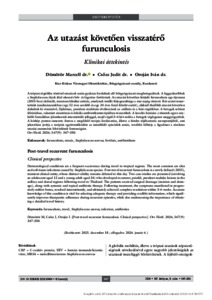 A trópusi régiókba történő utazások során gyakran fordulnak elő bőrgyógyászati megbetegedések. A leggyakoribbak a Staphylococcus fajok által okozott bőr- és lágyrész-fertőzések. Az utazást követően kiújuló furunculosis egy újonnan (2015-ben) definiált, tranziens klinikai entitás, amelynek önálló létjogosultsága a mai napig vitatott. Két esetet ismertetünk tanulmányunkban (egy 12 éves serdülő és egy 34 éves fiatal felnőtt esetét), akiknél thaiföldi utazást követően alakultak ki visszatérő, fájdalmas, purulens nodularis elváltozások az axillaris és a háti régiókban. A betegek sebészi feltárásban, valamint szisztémás és lokális antibiotikumterápiában részesültek. A kezelés hatására a tünetek egyre enyhébb formákban jelentkeztek intermittáló jelleggel, majd végül 3–6 hét múlva a betegek véglegesen meggyógyultak. A kórkép pontos ismerete fontos a megfelelő terápia kiválasztása, illetve a hiteles tájékoztatás szempontjából, ami jelentősen javítja a terápiás együttműködést az ismétlődő epizódok során, továbbá felhívja a figyelmet a részletes utazási anamnézis felvételének fontosságára. Orv Hetil. 2026; 167(9): 347–350. | Dermatological conditions are a frequent occurrence during travel to tropical regions. The most common are skin and soft tissue infections caused by Staphylococcus species. Post-travel recurrent furunculosis is a newly defined (2015), transient clinical entity, whose distinct validity remains debated to this day. Two case studies are presented (involving an adolescent aged 12 and a young adult aged 34) who developed recurrent, painful, purulent nodular lesions in the axillary and dorsal regions following travel to Thailand. The patients received surgical drainage (incision and drainage), along with systemic and topical antibiotic therapy. Following treatment, the symptoms manifested in progressively milder forms, resolved intermittently, and ultimately achieved complete resolution within 3–6 weeks. Accurate knowledge of this condition is vital for selecting adequate therapy and providing credible information, which significantly improves therapeutic adherence during recurrent episodes, while also underscoring the importance of obtaining a detailed travel history.