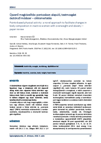 Újszerű megközelítés: pontozáson alapuló, testmozgást ösztönző módszer – cikkismertetés = Points-based physical activity: a novel approach to facilitate changes in body composition in inactive women with overweight and obesity –paper review