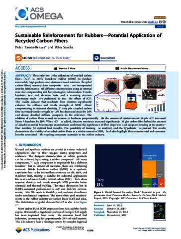 Tamás-Bényei, Péter and Sántha, Péter (2025) Sustainable Reinforcement for Rubbers─Potential Application of Recycled Carbon Fibers. ACS OMEGA, 10 (50). pp. 61276-61287. ISSN 2470-1343