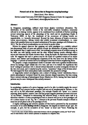 Arató, Dániel and Rebrus, Péter (2025) Natural and ad hoc hierarchies in Hungarian morphophonology. In: Sprachwissenschaftliche Tagung für Promotionsstudierende 22, 2025 February 26 – 2025 February 28, online. (In Press)