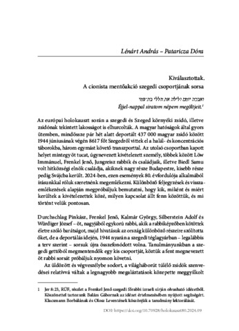 Lénárt, András and Pataricza, Dóra (2024) Kiválasztottak. A cionista mentőakció szegedi csoportjának sorsa. In: A holokauszt Magyarországon nyolcvan év múltán. Országos Rabbiképző - Zsidó Egyetem (ORZSE), Budapest, pp. 229-273. ISBN 9786155494154