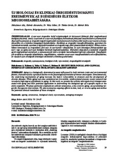 A szervezet öregedése belső tulajdonságok és környezeti faktorok által meghatározott biológiai folyamat, amely a szövetek és a szervek fiziológiai funkcióinak fokozatos beszűkülésével jellemezhető. Ezzel párhuzamosan az öregedés mögött meghúzódó mechanizmusok érzékenyebbé teszik a szervezetet a stressztényezőkre és a krónikus betegségek kialakulására. Korábban az öregedést visszafordíthatatlan, egyirányú folyamatnak tartották, azonban a legújabb kutatások az öregedés nagy fokú plaszticitását tárták fel. Ebben a munkában bemutatjuk az öregedéssel járó sejt- és szervszintű változásokat, és ezek lehetséges felhasználását egy szerv vagy az egész szervezet biológiai korának meghatározásához. Kiemelten tárgyaljuk a sejtszintű öregedés egyik meghatározó eseményét, a szeneszcenciát mint a terápiás beavatkozások ígéretes célpontját. Összefoglaljuk továbbá az öregedés lelassítására, megállítására, valamint a szervezet visszafiatalítására tett erőfeszítéseket, és vázoljuk ezen stratégiák lehetséges átültetését a klinikai gyakorlatba. | Aging is a biologically determined process influenced by both intrinsic traits and environmental factors, characterized by a gradual decline in the physiological functions of tissues and organs. Simultaneously, the underlying mechanisms of aging increase the body's vulnerability to stressors and the development of chronic diseases. While aging was once considered an irreversible, unidirectional process, recent research has revealed a high degree of plasticity in aging. In this work, we present the cellular and organ-level changes associated with aging and their potential application in determining the biological age of a specific organ or the entire organism. We place particular emphasis on cellular senescence, a key event in aging, as a promising target for therapeutic intervention. We also summarize ongoing efforts to slow, halt, or reverse aging and outline the potential clinical translation of these strategies.