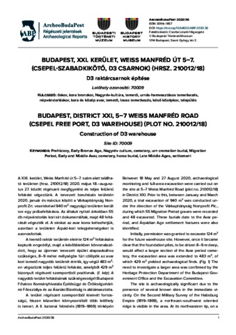 Mészáros, Boglárka (2020) Budapest, XXI. kerület, Weiss Manfréd út 5–7. (Csepel-Szabadkikötő, D3 csarnok) (hrsz. 210012/18) : D3 raktárcsarnok építése = Budapest, District XXI, 5-7 Weiss Manfred road (Csepel free port, D3 warehouse) (plot no. 210012/18) Construction of D3 warehouse. ARCHEOBUDAPEST (36). ISSN 30941857
