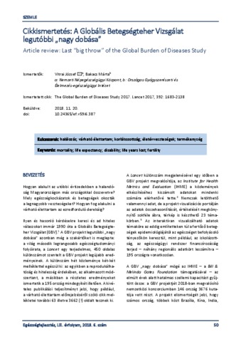 Vitrai, József and Bakacs, Márta (2018) Cikkismertetés: A Globális Betegségteher Vizsgálat legutóbbi „nagy dobása” = Article review: Last “big throw” of the Global Burden of Diseases Study. EGÉSZSÉGFEJLESZTÉS, 59 (6). pp. 50-60. ISSN 1786-2434 (nyomtatott); 2498-6666 (elektronikus)
