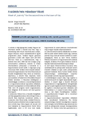 Klinger, Mária (2018) A születés hete másodszor Vácott = Week of „nativity” for the second time in the town of Vác. EGÉSZSÉGFEJLESZTÉS, 59 (5). pp. 91-93. ISSN 1786-2434 (nyomtatott); 2498-6666 (elektronikus)