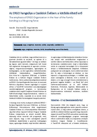 Ékes, Ilona and Varga, Gabriella (2018) Az ERGO hangsúlya a Családok Évében: a kötődés éltető erő = The emphasis of ERGO Organization in the Year of the Family: bonding is a life-giving force. EGÉSZSÉGFEJLESZTÉS, 59 (5). pp. 96-98. ISSN 1786-2434 (nyomtatott); 2498-6666 (elektronikus)