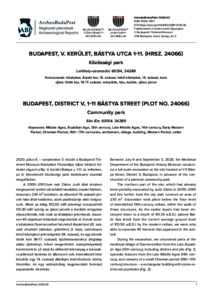 Tóth, Anikó (2020) Budapest, V. kerület, Bástya utca 1-11. (hrsz. 24066) : Közösségi park = Budapest, District V, 1–11 Bástya Street (plot no. 24066) : Community park. ARCHEOBUDAPEST (42). ISSN 30941857