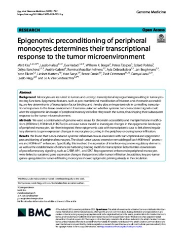 Kiss, Máté and Halász, László and Hadadi, Éva and Berger, Wilhelm K. and Tzerpos, Petros and Póliska, Szilárd and Kancheva, Daliya and Gabriel, Aurelie and Barthelmess, Romina Mora and Debraekeleer, Ayla and Brughmans, Jan and Elkrim, Yvon and Martens, Liesbet and Saeys, Yvan and Daniel, Bence and Czimmerer, Zsolt and Laoui, Damya and Nagy, László and Van, Ginderachter Jo A. (2025) Epigenomic preconditioning of peripheral monocytes determines their transcriptional response to the tumor microenvironment. GENOME MEDICINE, 17 (1). No. 82. ISSN 1756-994X