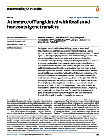 Lénárd, L. Szánthó and Merényi, Zsolt and Philip, Donoghue and Toni, Gabaldón and Nagy, László and Szöllősi, Gergely and Eduard, Ocaña-Pallarès (2025) A timetree of Fungi dated with fossils and horizontal gene transfers. NATURE ECOLOGY & EVOLUTION, 9. pp. 1989-2001. ISSN 2397-334X