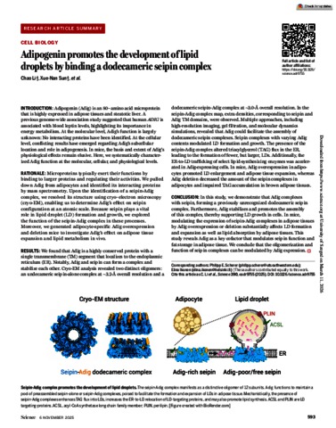 Li, Chao and Sun, Xue-Nan and Funcke, Jan-Bernd and Vanharanta, Lauri and Prasanna, Xavier and Gov, Kaitlynn and Li, Yan and Virostek, Megan and Joung, Chanmin and Joffin, Nolwenn and Kanerva, Kristiina and Szkalisity, Abel and Kulig, Waldemar and Straub, Leon and Chen, Shiuhwei and Velasco, Joselin and Cobb, Ayanna and La Padula, Davide and Wang, May-Yun and Onodera, Toshiharu and Vörös, Csaba and Kim, Dae-Seok and Kim, Min and Varlamov, Oleg and Li, Yang and Liu, Chen and Nawrocki, Andrea R. and Zhao, Shangang and Oh, Da Young and Wang, Zhao V. (2025) Adipogenin promotes the development of lipid droplets by binding a dodecameric seipin complex. SCIENCE, 390 (6773). ISSN 0036-8075