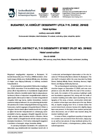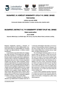 Bukva-Kovács, Krisztina (2020) Budapest, VI. kerület Dessewffy utca 7-11. (hrsz. 29160) : Hotel építése = Budapest, District VI, 7–11 Dessewffy Street (plot no. 29160) : Hotel construction. ARCHEOBUDAPEST (47). ISSN 30941857