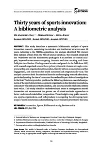 This study describes a systematic bibliometric analysis of sports innovation research, examining its evolution and intellectual structure over 30 years. Adhering to the PRISMA guidelines, the analysis identified 708 relevant SSCI-indexed articles from the Web of Science database. The research employed the VOSviewer and the Bibliometrix package in R to perform co-citation anal-ysis, keyword co-occurrence mapping, thematic evolution tracking, and three-field plot visualization. Findings reveal accelerated growth in the field since 2017, with research organized around three primary thematic clusters: strategic entrepreneurship and organizational innovation, identity-driven consumption and fan engagement, and innovation for health outcomes and programmatic value. The analysis uncovers both foundational theories and emerging research directions, particularly noting the rise of consumer-focused and impact-driven investigations in the field. The interpretation positions the following clusters as essential components of the sports innovation ecosystem: organizations that develop innovations, consumers who influence their adoption, and societal benefits that demonstrate their value. This study identifies underdeveloped areas in management model innovation and recommends the greater use of mixed-methods approaches to better understand stakeholder perspectives. These insights may guide researchers, sports organizations, and policymakers in navigating the developing land-scape of sports innovation and establishing future research priorities in this field.