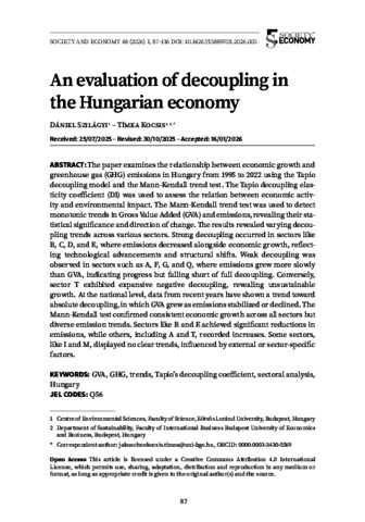 Szilágyi, Dániel and Jakuschné Kocsis, Tímea (2026) An evaluation of decoupling in the Hungarian economy. SOCIETY AND ECONOMY, 48 (1). pp. 87-116. ISSN 1588-9726