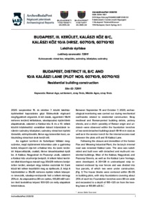 Gyenes, Gábor (2020) Budapest, III. kerület, Kalászi köz 8/C, Kalászi köz 10/A (hrsz. 60710/9, 60710/10) : Lakóház építése = Budapest, District III, 8/C and 10/A Kalászi út (plot nos. 60710/9, 60710/10) : Residential building construction. ARCHEOBUDAPEST (53). ISSN 30941857