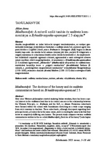 Aklan, Anna (2025) Madhuvidyā: A mézről szóló tanítás és vedānta kommentárjai a Bṛhadāraṇyaka-upaniṣad 2.5 alapján. KELETKUTATÁS, 36 (1). pp. 5-28. ISSN 0133-4778