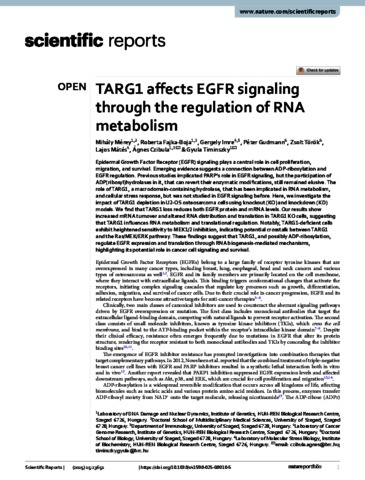 Mérey, Mihály and Fajka-Boja, Roberta and Imre, Gergely and Gudmann, Péter and Török, Zsolt and Mátés, Lajos and Czibula, Ágnes and Timinszky, Gyula (2025) TARG1 affects EGFR signaling through the regulation of RNA metabolism. SCIENTIFIC REPORTS, 15 (1). ISSN 2045-2322