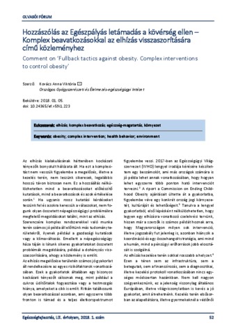 Hozzászólás az Egészpályás letámadás a kövérség ellen ‒ Komplex beavatkozásokkal az elhízás visszaszorítására című közleményhez = Comment on ‘Fullback tactics against obesity. Complex interventions to control obesity’