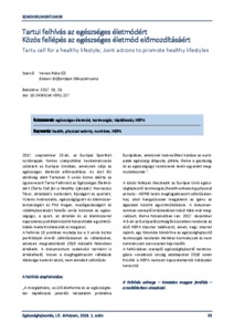 Veress, Réka (2018) Tartui felhívás az egészséges életmódért : Közös fellépés az egészséges életmód előmozdításáért = Tartu call for a healthy lifestyle : Joint actions to promote healthy lifestyles. EGÉSZSÉGFEJLESZTÉS, 59 (1). pp. 33-36. ISSN 1786-2434 (nyomtatott); 2498-6666 (elektronikus)