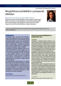 A prehabilitáció, vagyis a műtét előtti célzott felkészítés, a modern sebészeti ellátás fontos eleme, amely a posztoperatív szövődmények csökkentését és a funkcionális állapot gyorsabb visszanyerését szolgálja. A program során a beteg testileg és pszichésen is felkészül a műtétre, kiaknázva a perioperatív időszakban rejlő lehetőségeket. A mozgásfókuszú prehabilitáció javítja az izomerőt, az állóképességet és a mozgékonyságot, ami közvetlenül befolyásolja a műtét utáni felépülést. A prehabilitáció multimodális megközelítést alkalmaz: a testmozgás mellett dietetikai és pszichés támogatást is nyújt. Az aerob tréning fokozza a kardiovaszkuláris állóképességet, míg az anaerob, izomerősítő gyakorlatok növelik az izomtömeget és a fizikai tartalékokat, csökkentve a sarcopenia kialakulásának kockázatát. A program intenzitása és mozgásformái a beteg életkorához, társbetegségeihez és funkcionális állapotához igazítottak; a korai kezdés és a felügyelt programok különösen hatékonyak. Az esendőség felismerése kulcsfontosságú, mivel a csökkent fizikai tartalék növeli a komplikációk kockázatát. A prehabilitáció során a betegek megtanulják a korai mobilizáció és a rendszeres testmozgás jelentőségét, ezzel stabil alapot teremtve a műtét utáni felépüléshez. A mozgásfókuszú prehabilitáció bizonyítékokon alapuló, személyre szabott eszköz a betegút optimalizálására, a szövődmények csökkentésére és a funkcionális állapot mihamarabbi visszaállítására. | Prehabilitation, or targeted preoperative preparation is an essential component of modern surgical care, aimed at reducing postoperative complications and facilitating faster recovery of functional capacity. During the program, patients are prepared physically and psychologically for surgery, taking advantage of the opportunities presented by the perioperative period. Exercise-focused prehabilitation improves muscle strength, endurance, and mobility; directly influencing postoperative recovery. Prehabilitation is multimodal, combining physical activity with dietary and psychological support. Aerobic training enhances cardiovascular endurance, while anaerobic, strength-focused exercises increase muscle mass and physical reserves, reducing the risk of sarcopenia. The intensity and type of exercises are tailored to the patient’s age, comorbidities, and functional status, with early initiation and supervised programs demonstrating particular effectiveness. Recognizing frailty is crucial, as reduced physical reserves increase the risk of complications. Prehabilitation teaches patients the importance of early mobilization and regular physical activity, establishing a stable foundation for postoperative recovery. Exercise-focused prehabilitation represents an evidence-based, individualized approach to optimizing patient pathways, minimizing complications, and accelerating the restoration of functional capacity.